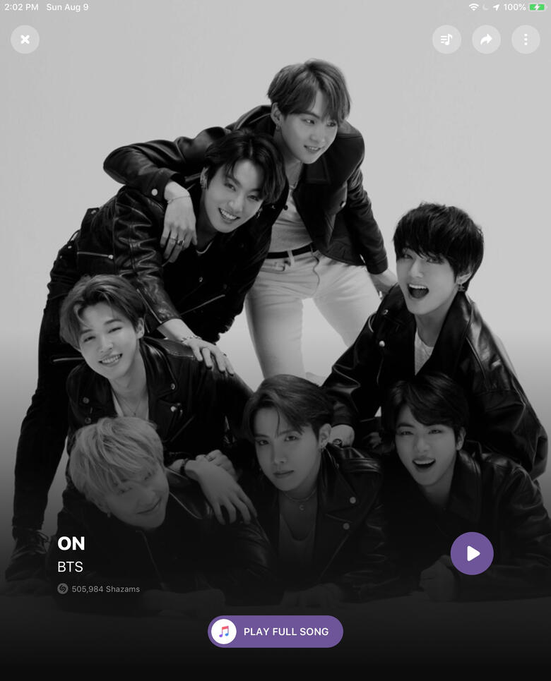 Play the BTS song you want to Shazam from anywhere you like (e.g., Spotify, Apple Music, Youtube Music, your car stereo, or CD player in your home, etc.); just make sure your Shazam app (your device) can “hear” the song.